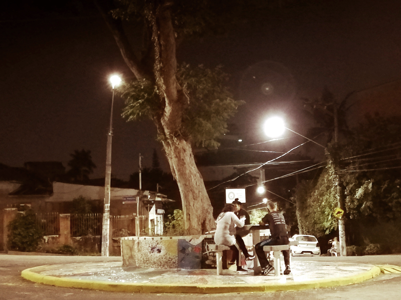 Tem uma coisa que sempre me acontece: enquanto o avião em que estou sobrevoa os subúrbios da cidade, já baixo, preparando para pousar, eu olho pela janela aquelas ruas e praças, talvez vazias se o vôo chega tarde da noite, desejando estar lá. A luz da iluminação pública, sobretudo nas cidades que ainda usam lâmpadas de luz quente amarela, são um convite acolhedor para estar com os pés no chão, sentado na guia ou num banco da praça, sentindo a temperatura da noite. Mas como é difícil descer desse avião.