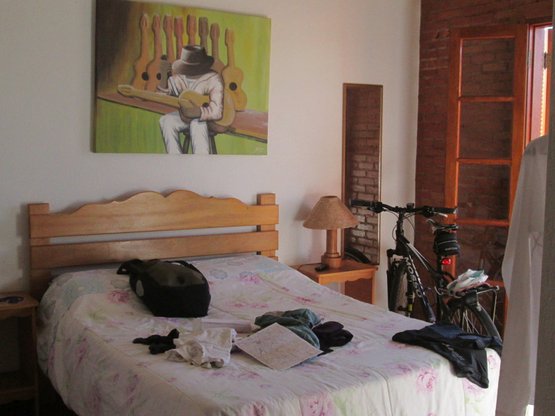 Eu já vinha purificado por três dias de estrada e por uma mudança de planos certeira que me trouxe aqui. Bastava tomar meu café da manhã no salão do hotel, arrumar as coisas no alforje e sair. Bastava? Tanto não bastava que demorei bastante nesse processo de saída. A janela do apartamento, com aquela vista da cidade e da Fernão Dias, por onde passo em tantas viagens, estava me segurando. Precisei ainda dar uma volta demorada e contemplativa pela praça da matriz, com a bagagem já montada na bicicleta, antes de tomar meu rumo.